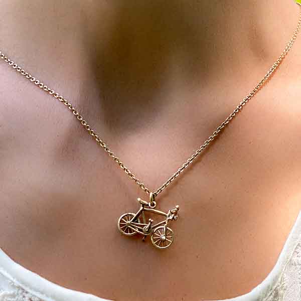 Measuring approx. 20 x 15mm, with moving wheels, fashioned in 9k yellow gold. With full British hallmarks for Birmingham.