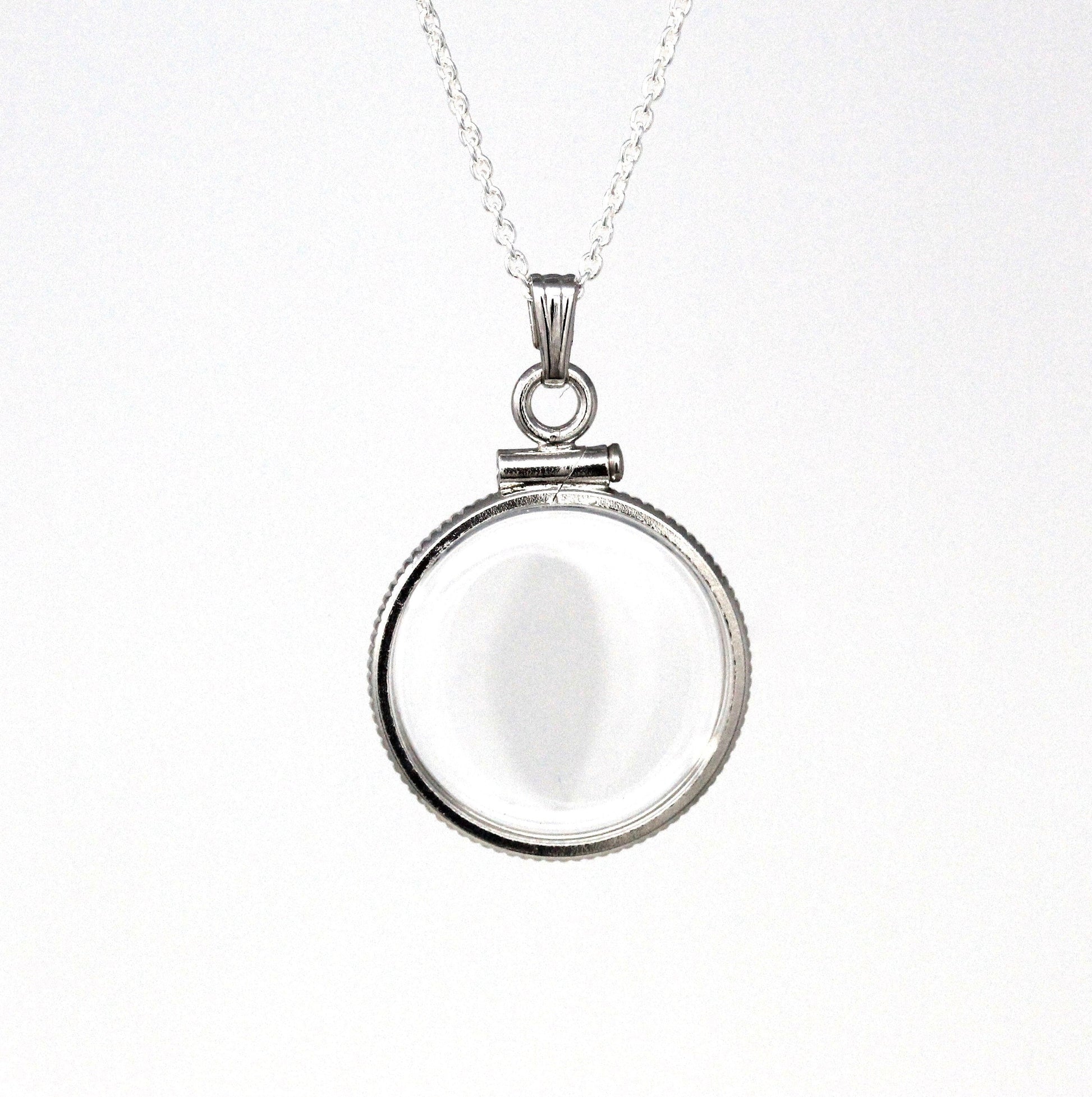 Empty Shaker Locket - Sterling Silver Clear Pendant Locket Charm - Customizable Double Sided Necklace Photos Keepsakes Dime Sized Jewelry