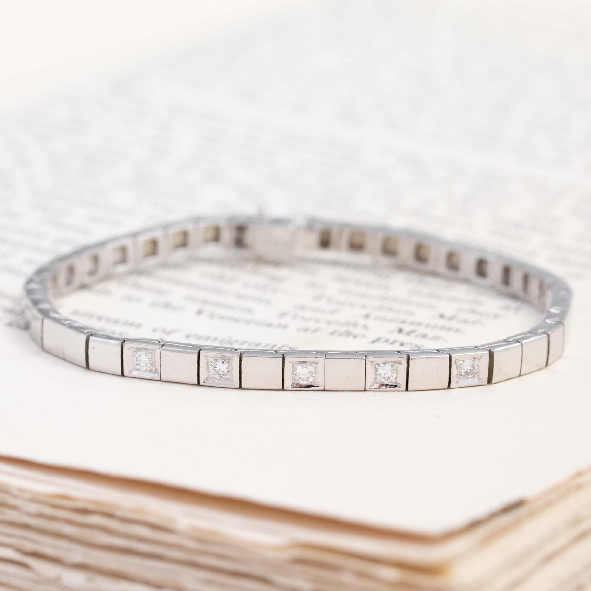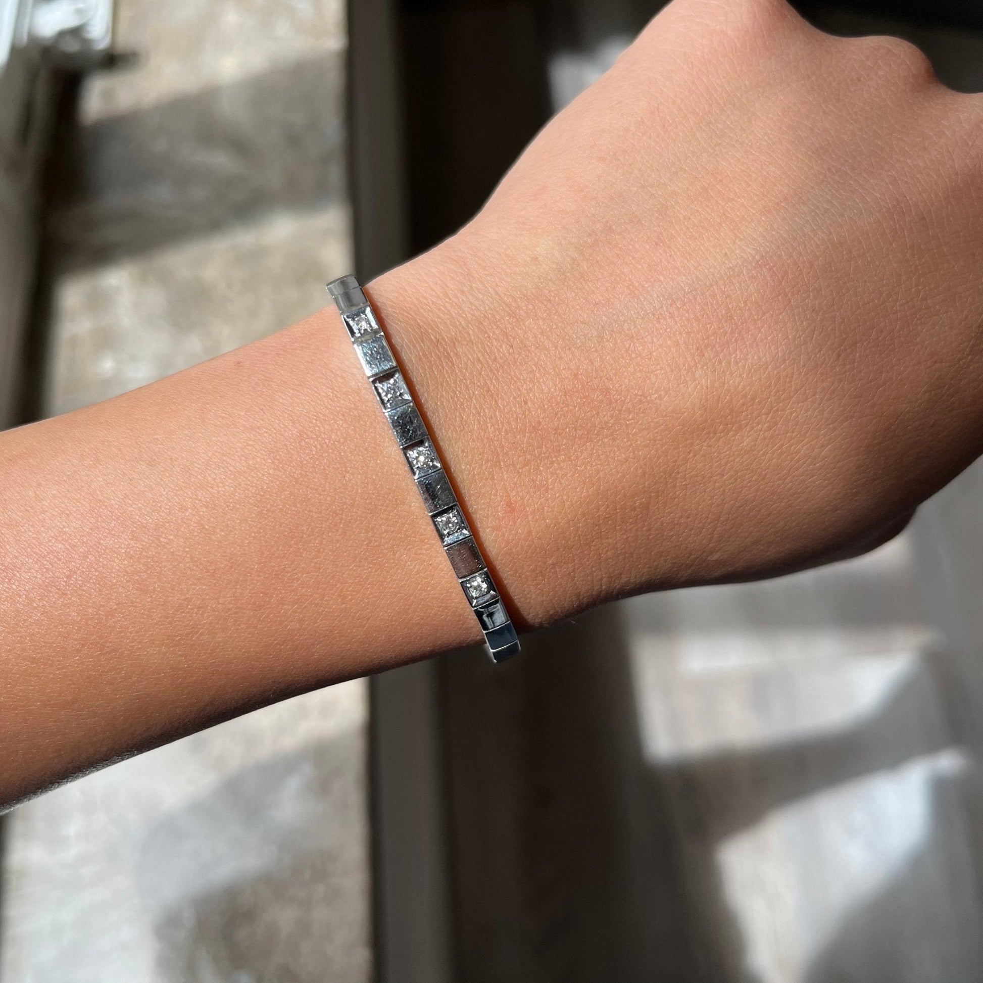 We just adore how unique this bracelet! Sleek and simple in its design, and studded with a few sparkly diamonds for a little sparkle on the wrist. The perfect bracelet for those looking for a little wrist bling but in a more understated style.