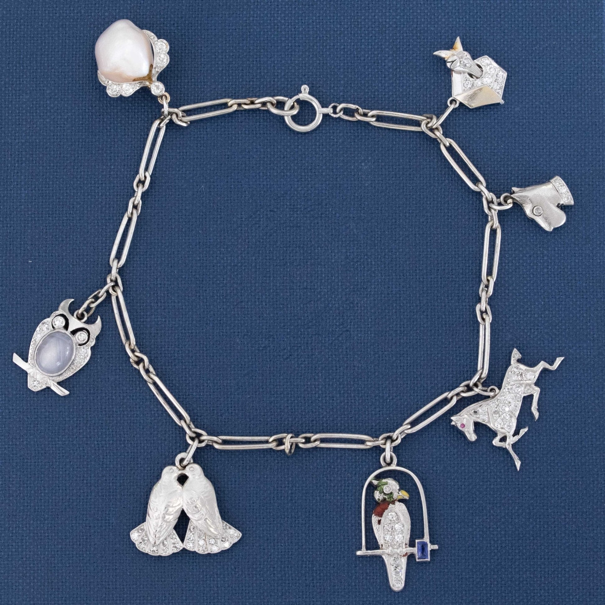 Vintage Diamond & Miniature Animal Charm Bracelet